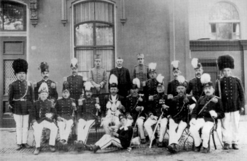 Bezoek van de schutterij aan Arnhem in 1919. Zittend van links naar rechts: Jan van de Weert, Piet Mingels, Jozef Goessen, Michiel Schrijnemaekers, Theodoor van de Weerdt, Jan Wackers, Willem Waber, Micheel Berghmans. Staande: Hendrik Heynen, Theodoor van de Weerdt, Jan Spronck, N. N. burgemeester Spauwen, N. N. Jan Doyen, Nicolaas Berghmans, Nicolaas Goessen, Jan Houten. Liggend: Sjef Dassen.